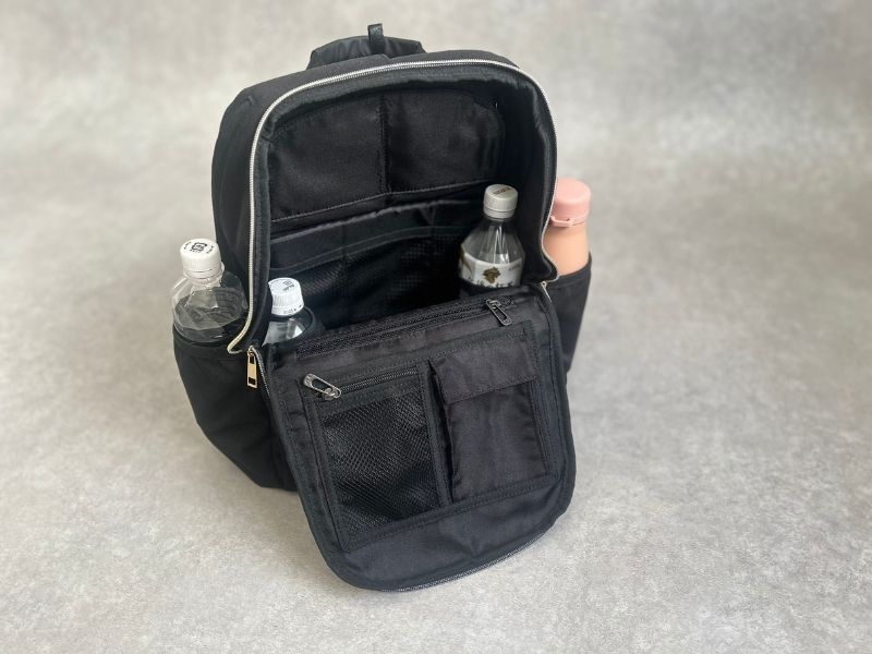 はい。ペットボトルや折り畳み傘などは、両サイドの内側・外側の合計4か所に収納できるポケットを設けております。